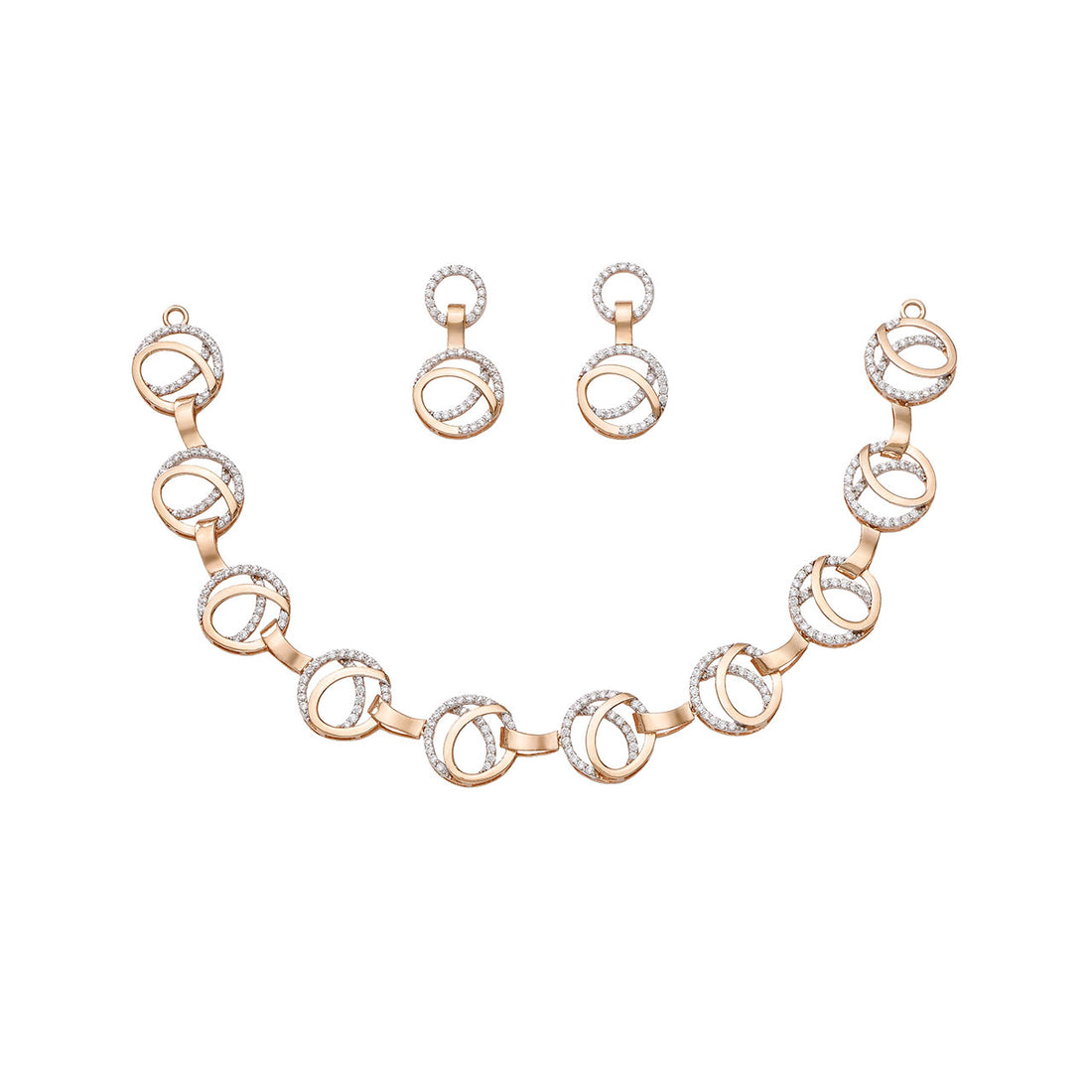 Ethereal Orbit Necklace Set ✨ Diamond: Pavé-set American Diamonds (Zircon) Gold: 18K Rose Gold (BIS...