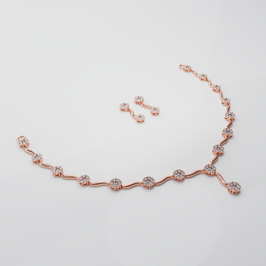 Elegant Rose Gold Square Cluster Necklace Set Gold: 18K Rose Gold (BIS Hallmarked 750, 15.100g)...