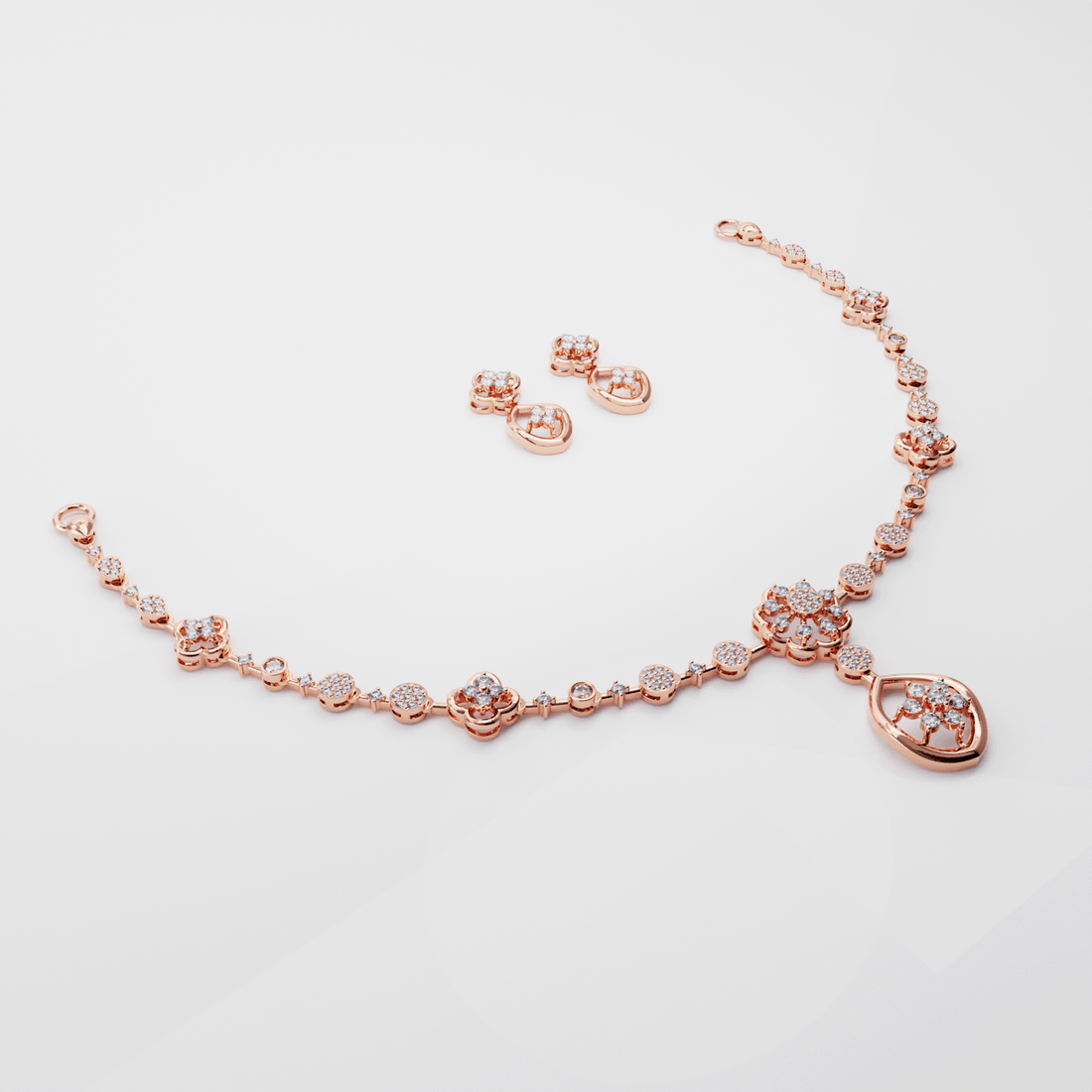 Reva Necklace For Women- Exquisite Rose Gold Floral Necklace Set