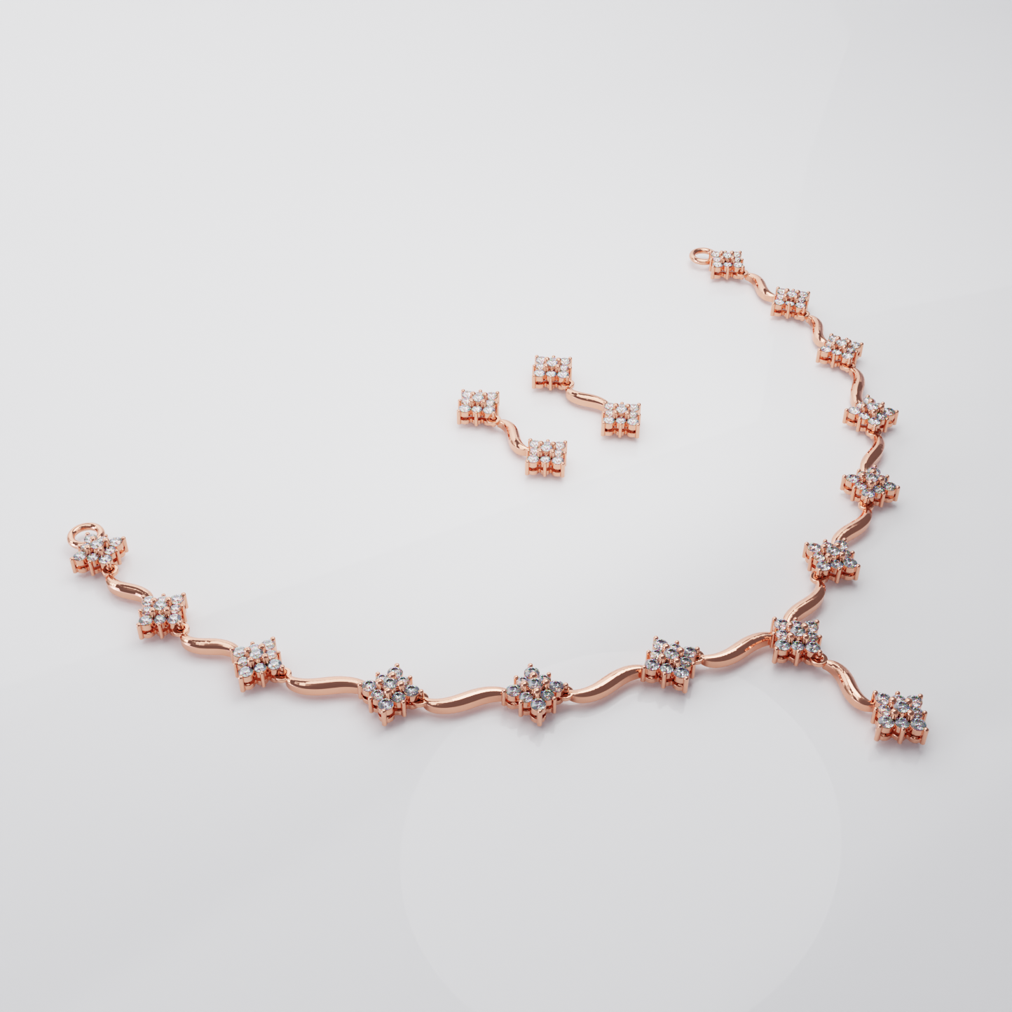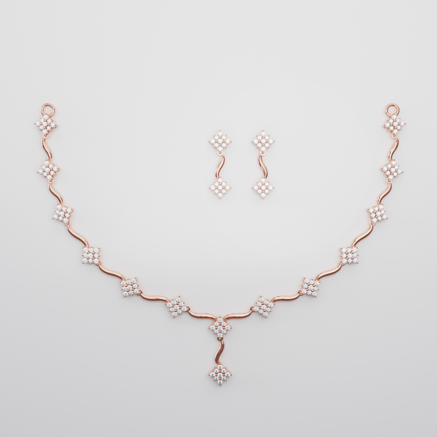 Elegant Rose Gold Square Cluster Necklace Set