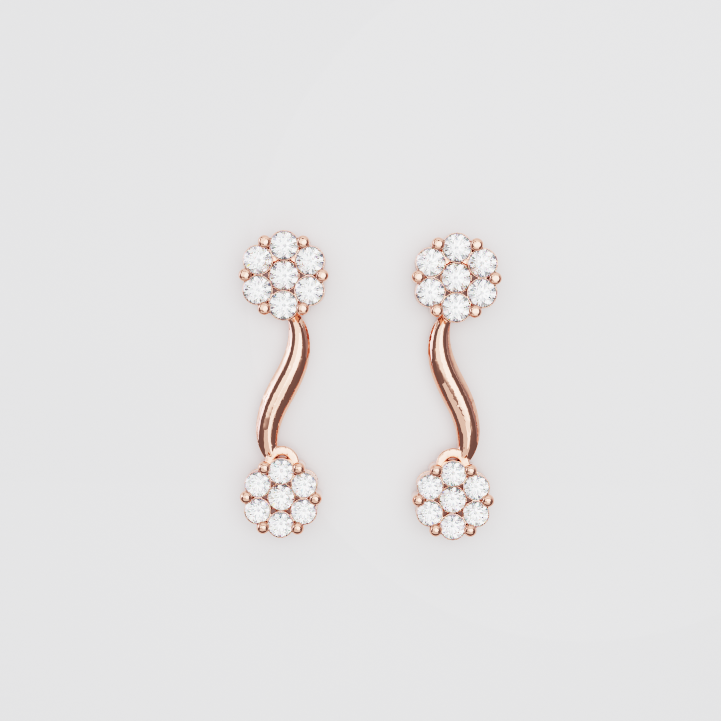 Design: A stunning floral-inspired necklace set crafted in luxurious 18K rose gold. The necklace features delicate wavy gold links adorned with dazzling diamond clusters, creating a graceful and refined aesthetic. Paired with matching floral drop earrings, this set is the perfect balance of sophistication and timeless elegance.